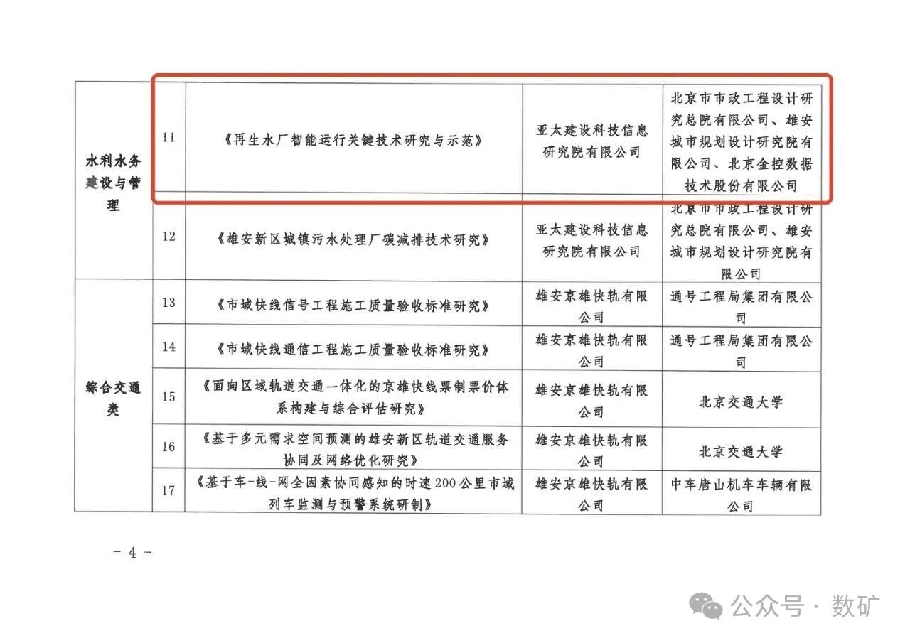 近日,河北雄安新區(qū)建設和交通管理局正式下達《2025年雄安新區(qū)建設科技計劃項目的通知》。金控數(shù)據(jù)作為核心合作單位,榮幸參與其中“水利水務建設與管理”領域的重點項目——《再生水廠智能運行關鍵技術研究與示范》。